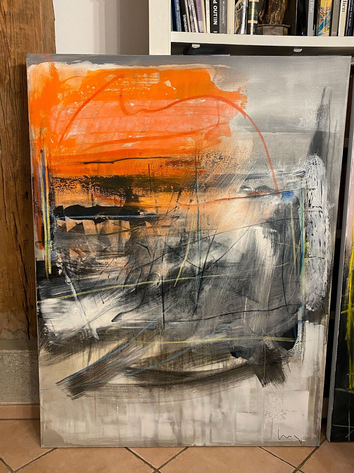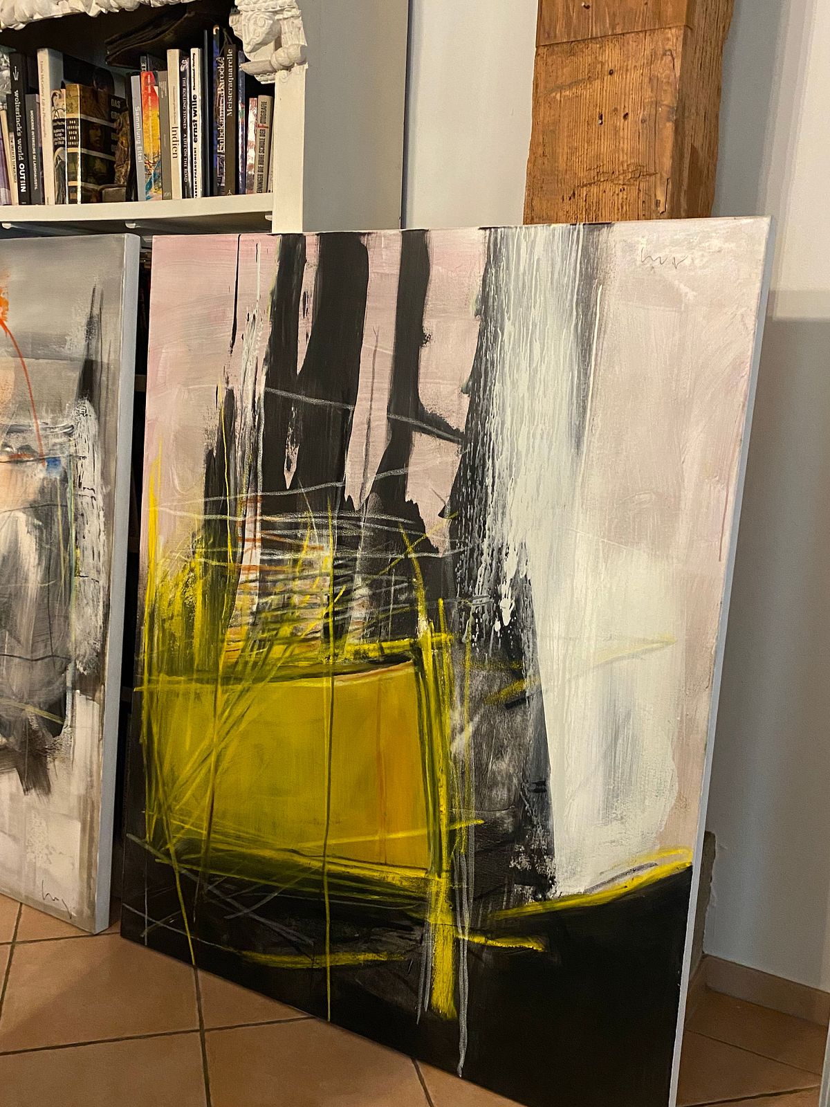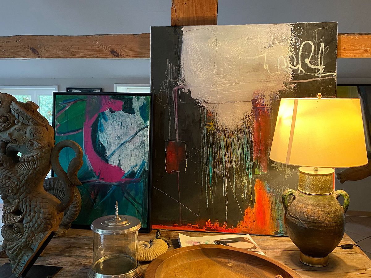 Here, where ideas are born and shaped, the artist works with passion and precision using acrylics, oil sticks, and canvas stretched on wooden frames.